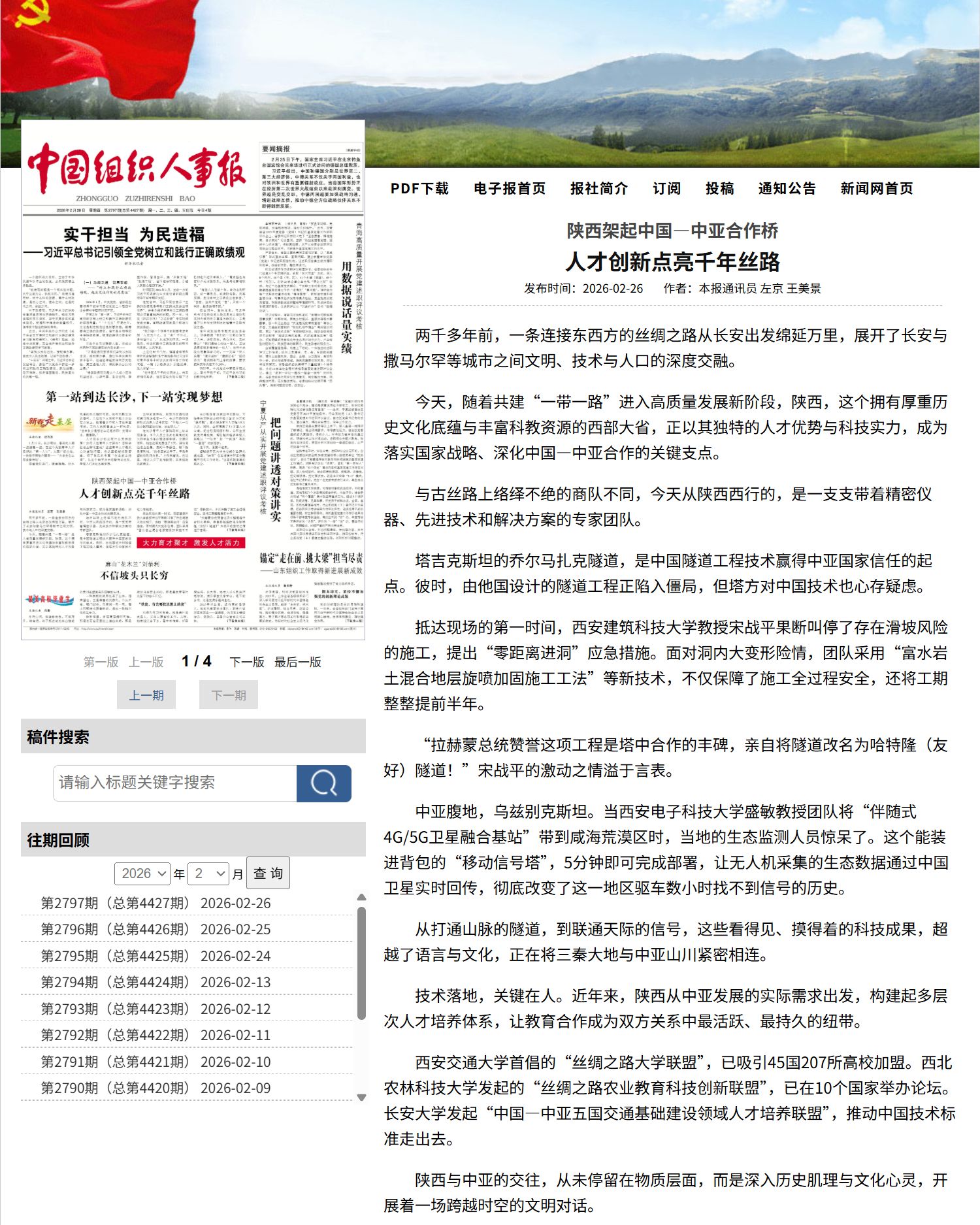 当地质仪器监测着中吉乌铁路的“脉搏”,当节水技术滋润着中亚的农田,当绿色蓝图勾勒着中亚城市的明天……陕西的人才大军,正沿着先贤的足迹从长安出发,通向一个共生共荣、共享未来的世界。