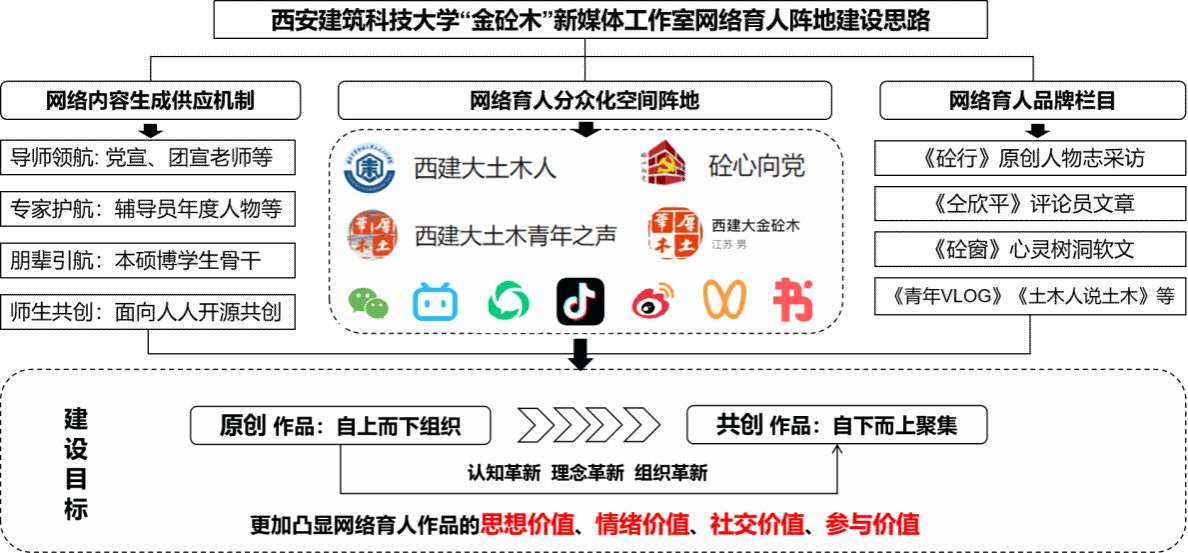 党的二十届三中全会《决定》提出,要形成网上思想道德教育分众化、精准化实施机制。习近平总书记在全国教育大会上强调,要不断拓展实践育人和网络育人的空间和阵地。当前,伴随着“数智技术”共生成长的青年一代,其情感需求、行为喜好、社会交往、价值追求等均发生现代化嬗变,呈现出诸多新特点、新特征。西安建筑科技大学土木工程学院立足二级学院网络育人阵地建设,不断探索“导师领航+专家护航+朋辈引航+师生共创”的网络内容生产供给机制,搭建“分众化、精准化”网络育人空间阵地,构建具有“思想价值、情绪价值、社交价值、参与价值”的网络育人品牌栏目,打造“金砼木”新媒体工作室,让“年轻化”表达重塑网络育人“生生场域”,用“场景化”视角丰富学生情感体验,通过“从原创到共创”的范式革新,不断培育网络思政引领力。