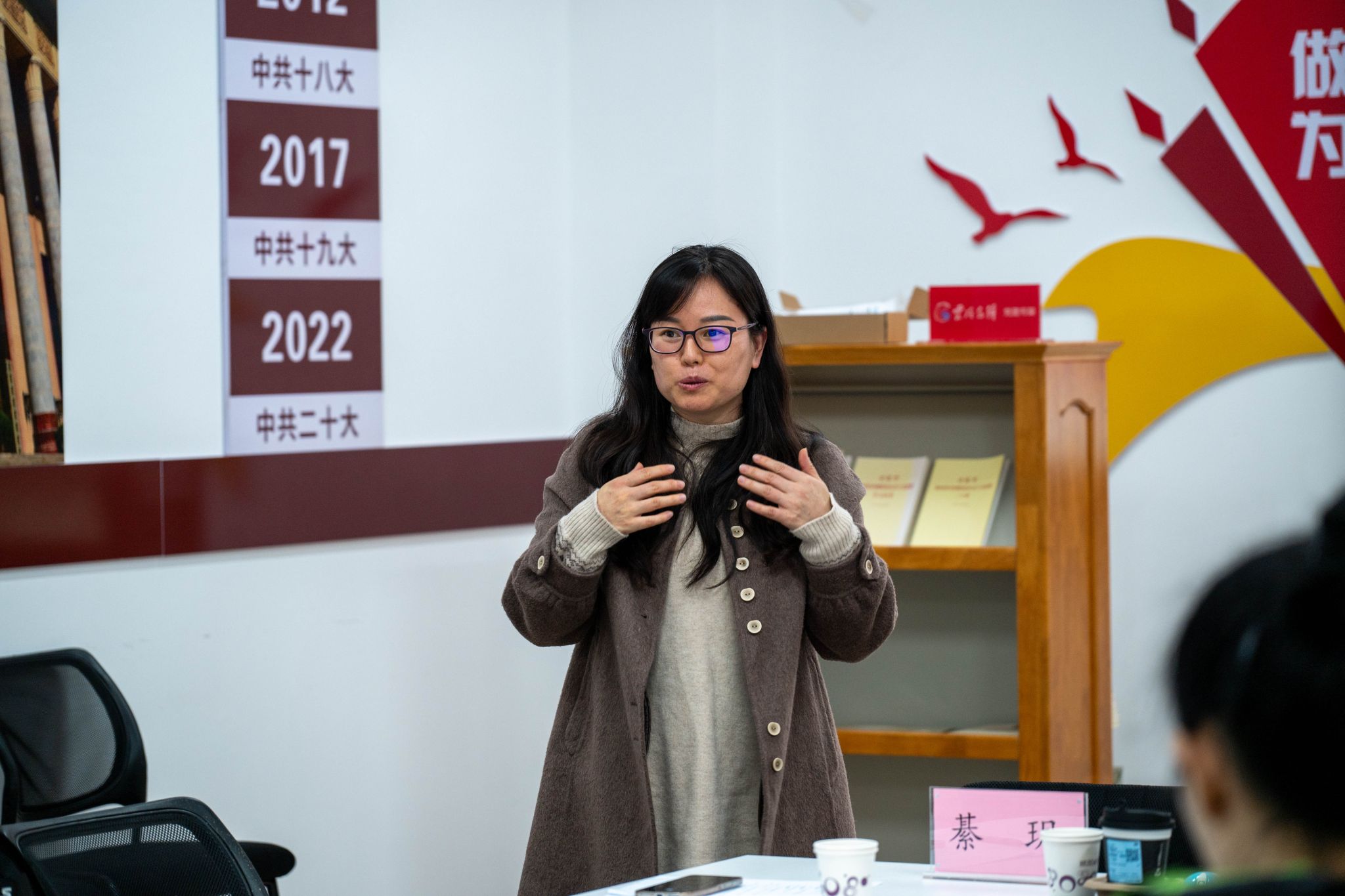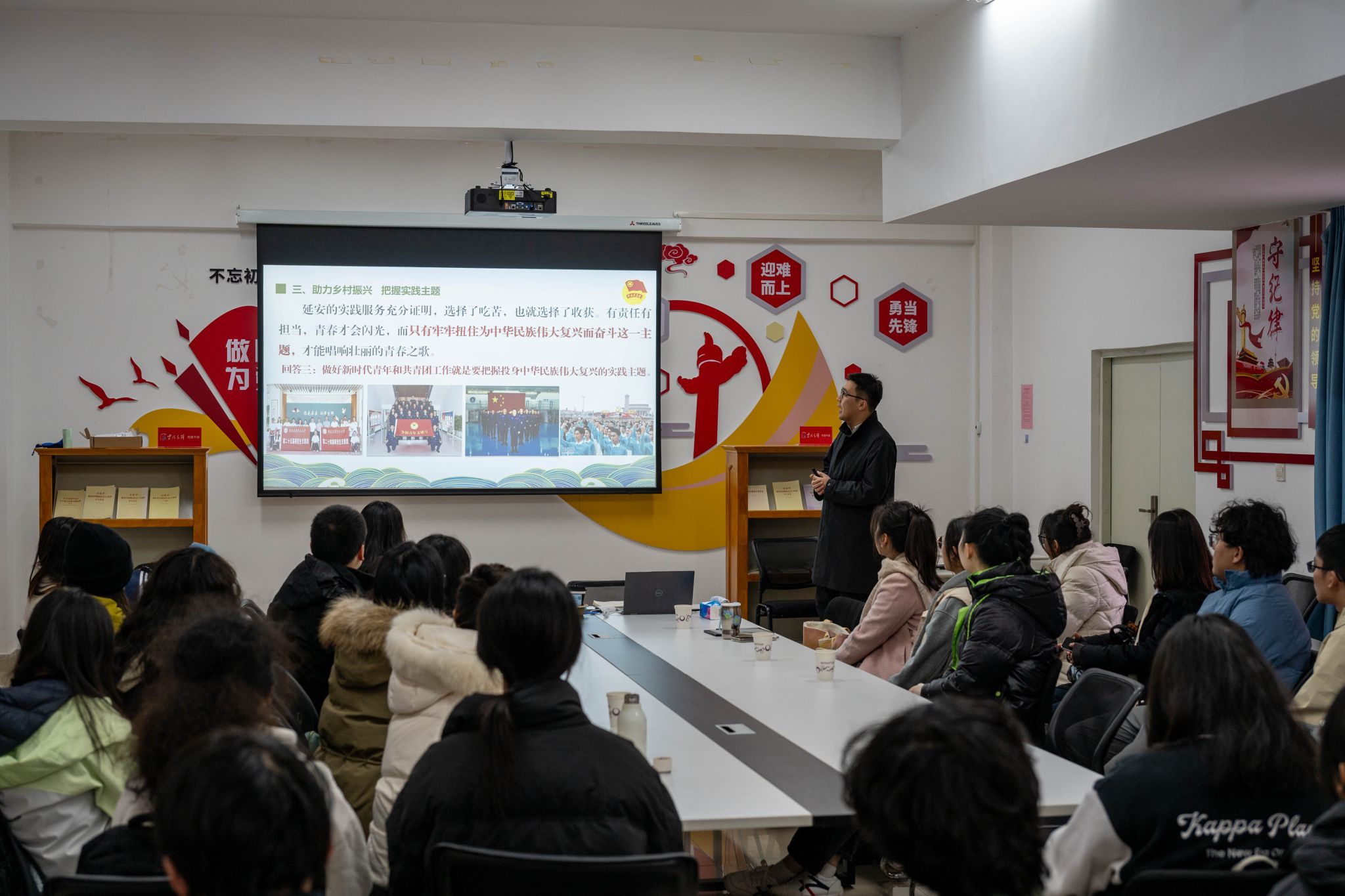 綦玥以《做好新时代青年和共青团工作的根本遵循》为主题,通过分享与青年学生在“三秦学子圣地行”中的实践感悟和观察思考,从如何充分认识并坚持正确的领导力量、奋斗目标、实践主题和组织基础四个方面深入浅出地阐明了延安精神在新时代对青年和共青团工作开展的深刻启发。分享结束后,与会师生就如何运用新时代伟大变革成功案例,充分发挥红色资源育人功能,不断拓展实践育人和网络育人的空间和阵地进行了交流互动。