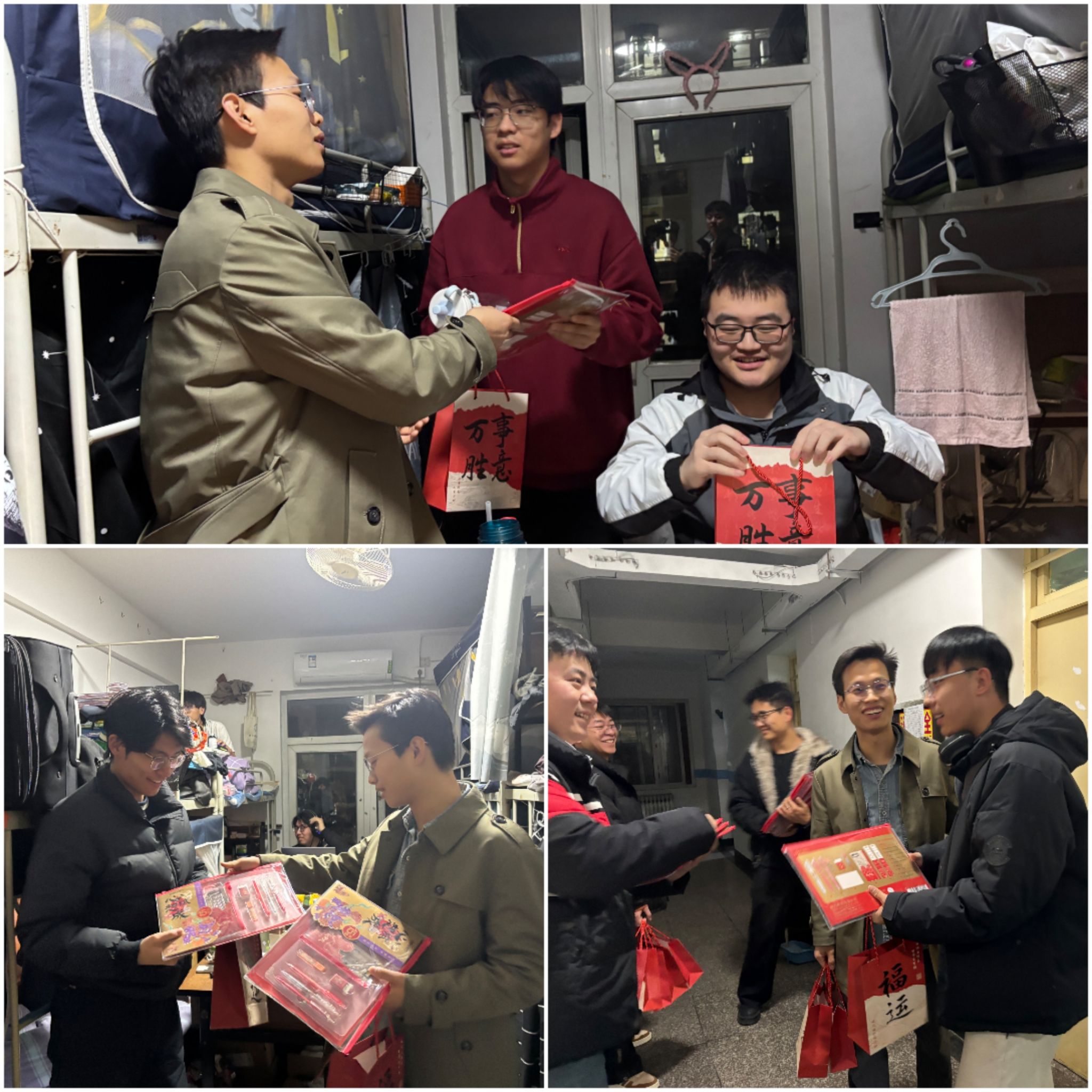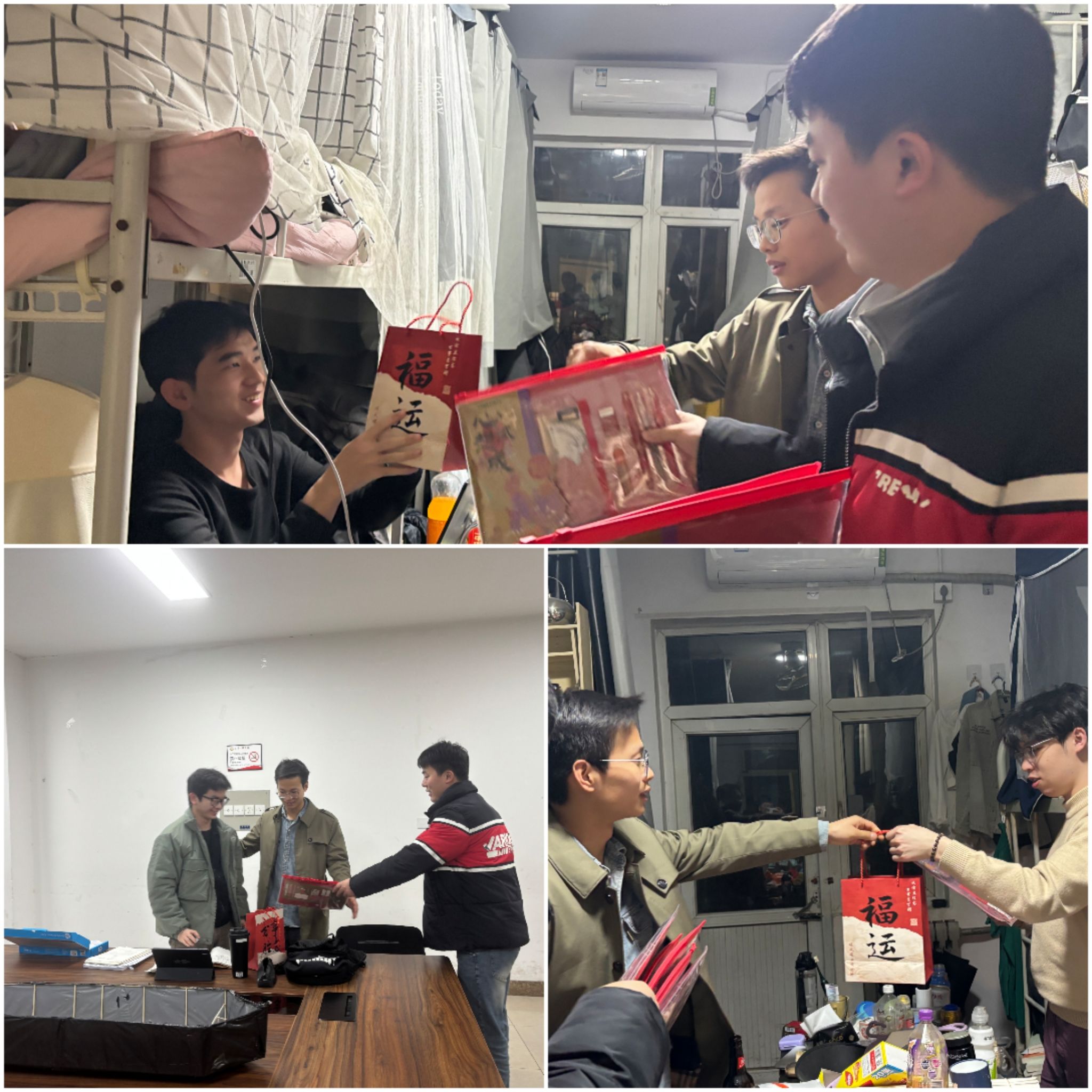 正值考研冲刺在即,为关怀我院考研学子备考状态、缓解心理压力、传递学院关怀与期望,2025年12月12日晚,我院组织师生,深入考研学子宿舍,送上“考研大礼包”,为考生送上“考前助力”。