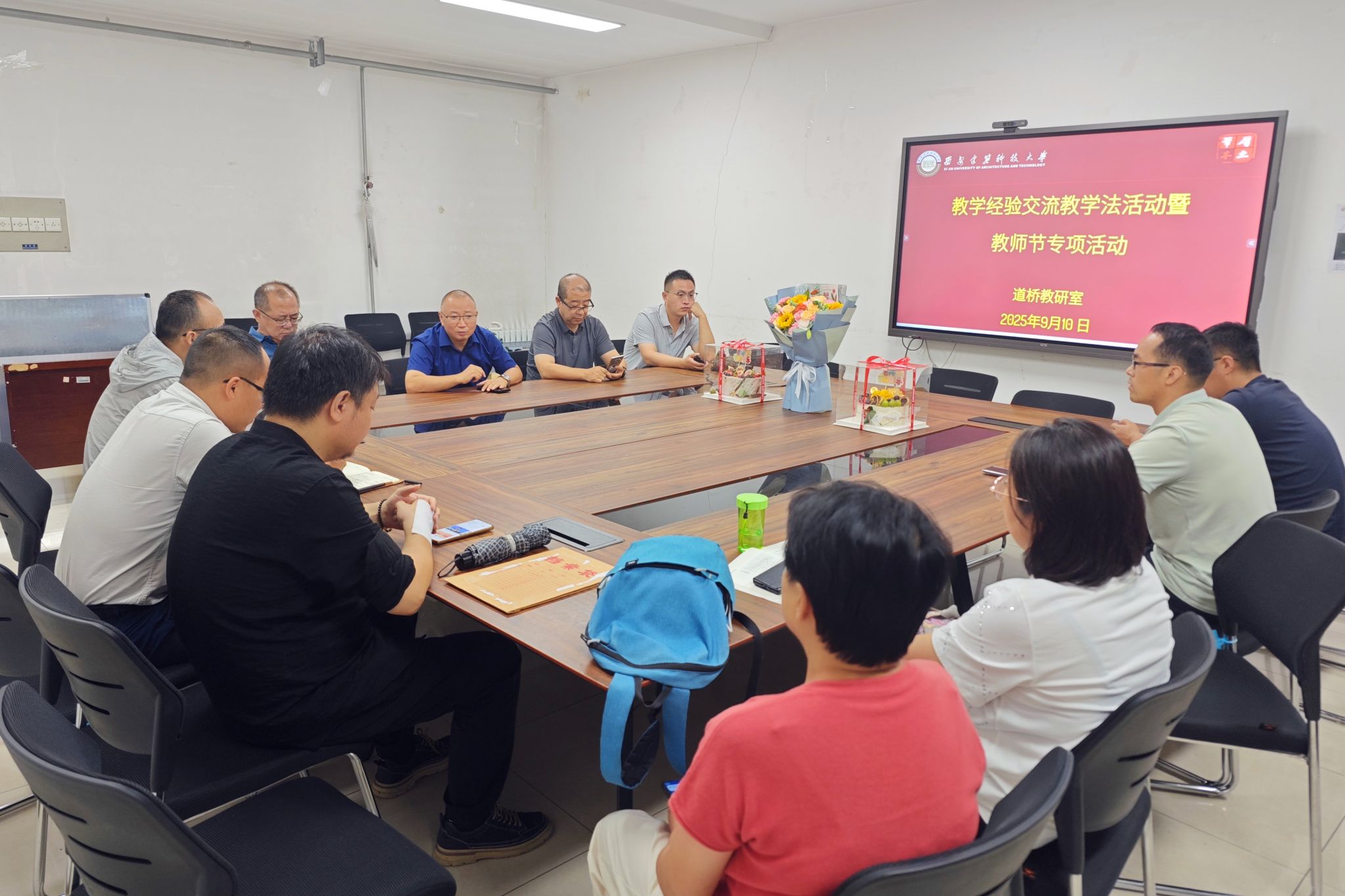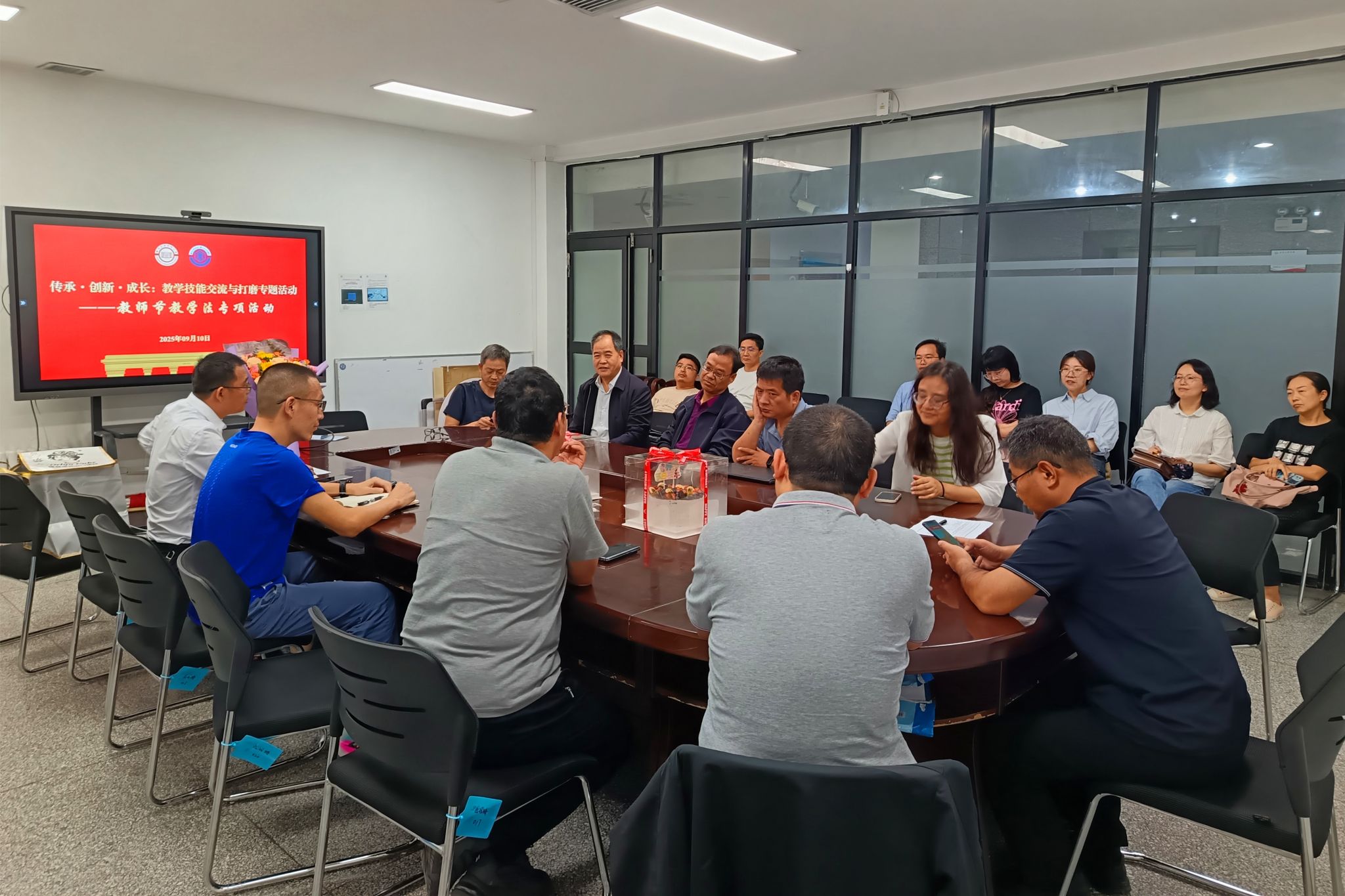 在教师节当天,学院为全体教职工准备了节日鲜花和蛋糕,向长期以来奋斗在教学、科研一线的全体教职工送上诚挚的节日祝福,希望全院教职工对标“双一流”建设形势和任务,坚持做立德树人的“大先生”、攻坚克难的“大学者”、师德师风的“示范者”,不断夯实一流人才培养根基,营造尊重学术、追求卓越的创新环境,让学校真正成为人才辈出的沃土,为学校高质量发展和“双一流”建设做出贡献。