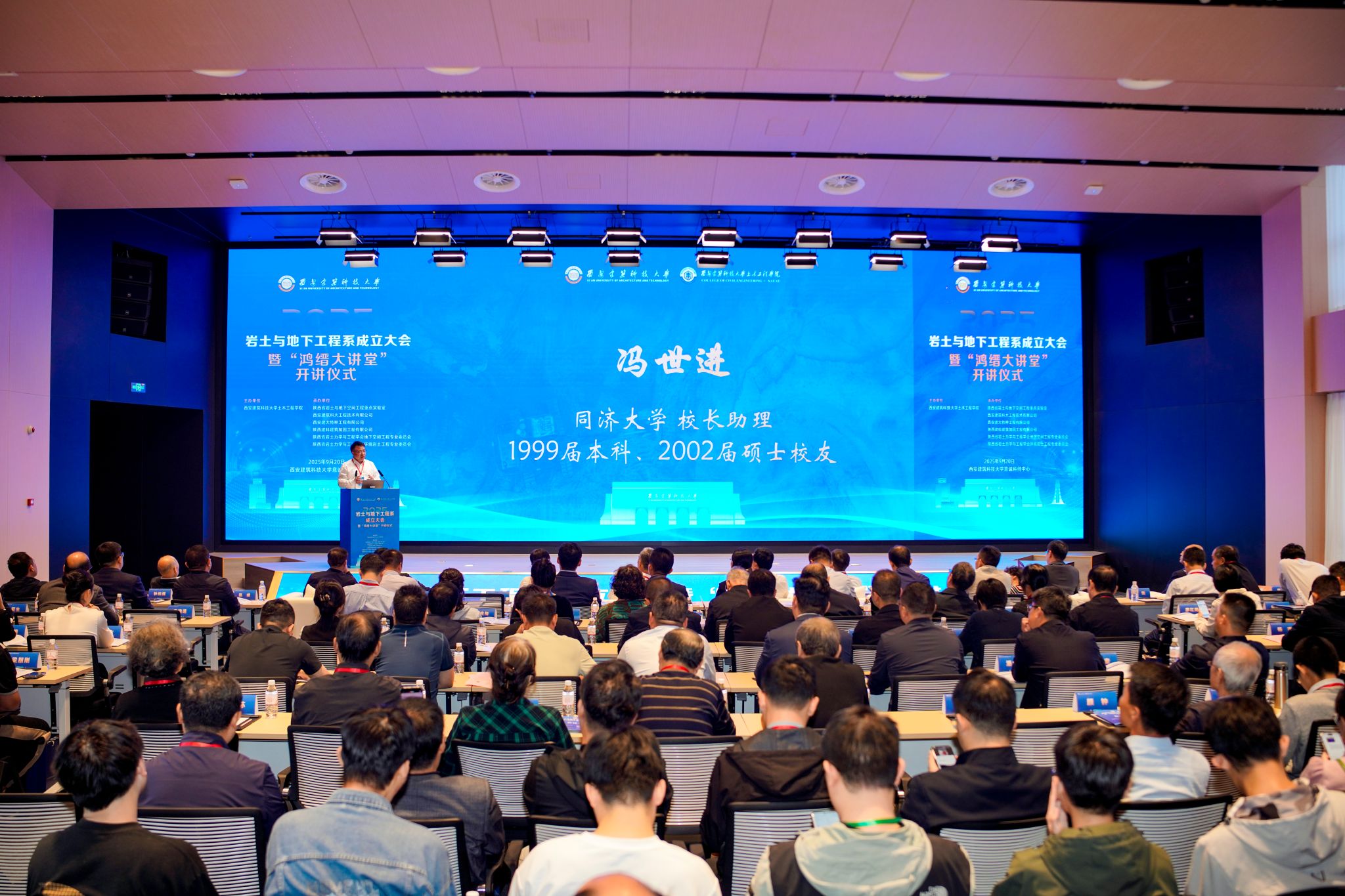 9月20日,西安建筑科技大学土木工程学院岩土与地下工程系成立大会暨鸿缙大讲堂开讲仪式在建大意诚科创中心举行。学校副校长刘晓武,原党委书记苏三庆,机械工业勘察设计研究院有限公司总工程师郑建国,大连理工大学原党委副书记、副校长邵龙潭,我校校友、同济大学校长助理冯世进,中铁二十局集团有限公司副总经理加武荣,中铁十六局集团有限公司副总经理朱玉,陕西省岩土力学与工程学会理事长党发宁,陕西省土木建筑学会办公室主任赵小钦,我校原岩土教研室主任刘明振等同兄弟高校、科研院所、企事业单位嘉宾、校友师生代表、钱鸿缙先生家属参加会议。会议由学院党委书记江中文主持。