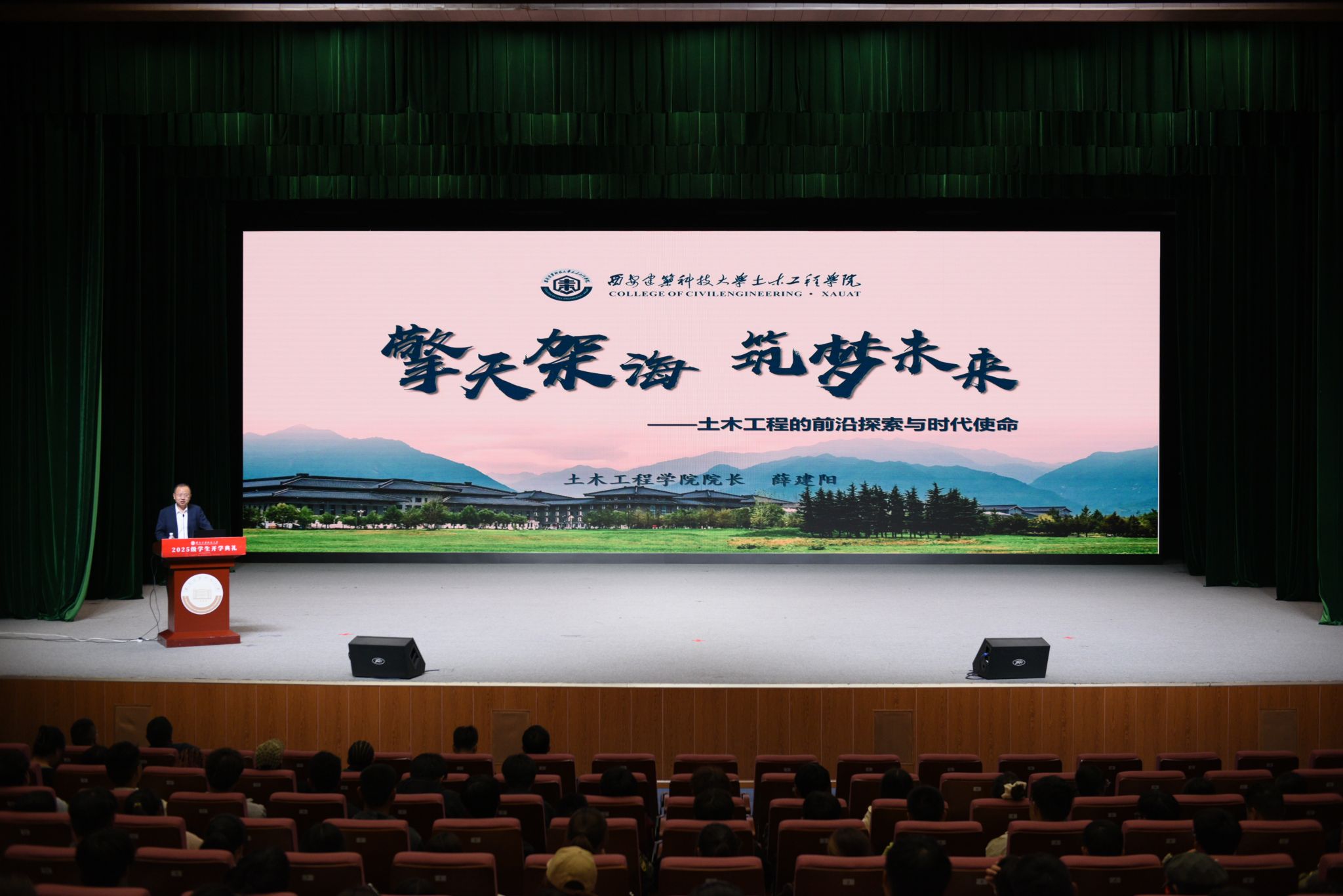 典礼结束后,薛建阳为新生讲授了题为“擎天架海 筑梦未来:土木工程的前沿探索与时代使命”的新学期第一课。他从土木工程的内涵切入,生动阐述了土木工程在人类文明进程中的重要作用。他重点介绍了智能建造、绿色低碳、韧性城市、深海深空探测等前沿发展方向,指出新时代的土木工程师不仅是工程师,更是可持续发展的规划者和未来生活的创造者。
