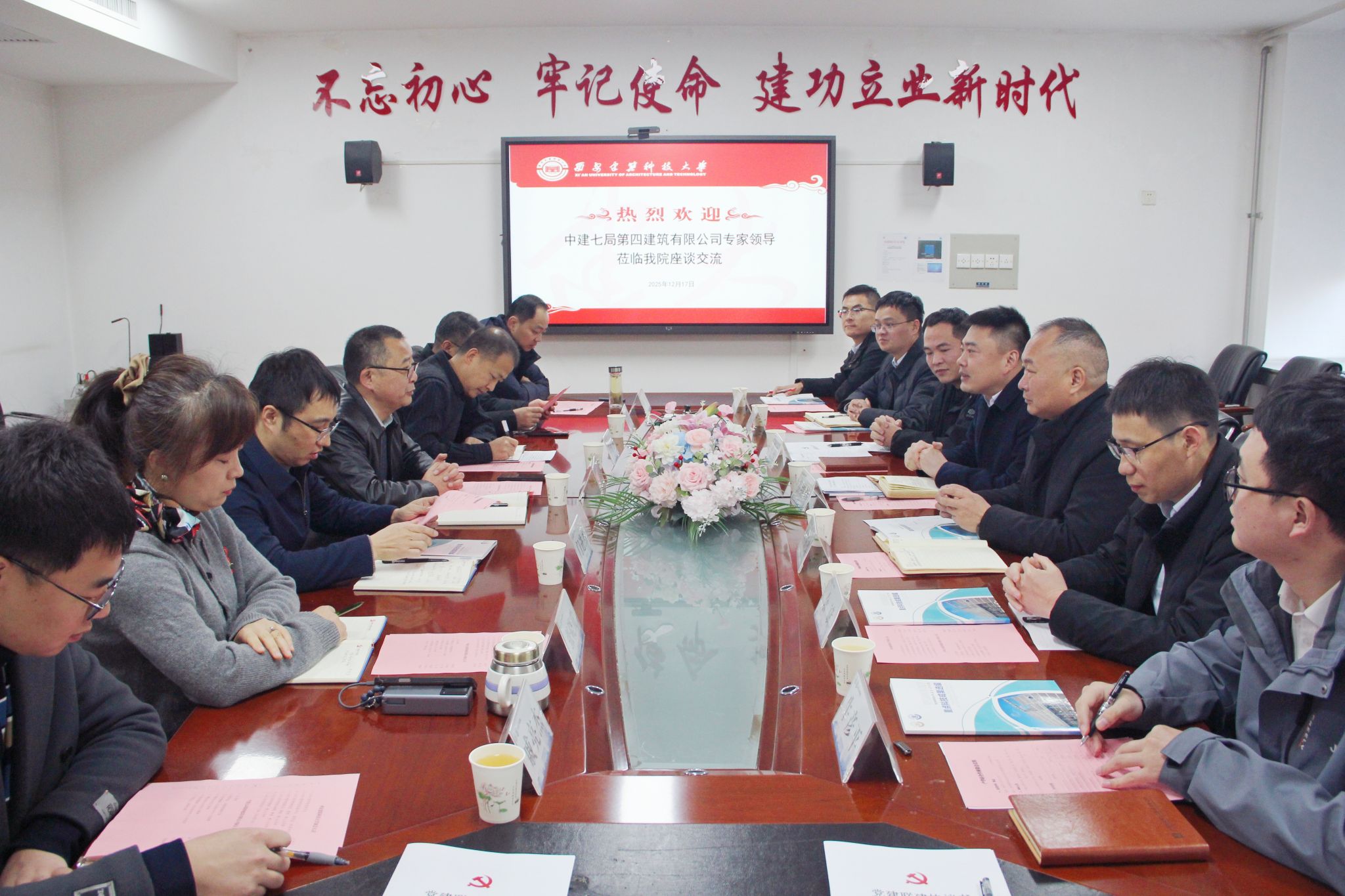 12月17日上午,土木工程学院与中建七局第四建筑有限公司在土木工程学院311会议室召开产学研合作座谈会暨签约仪式。学院党委书记江中文、党委副书记李路路、副院长门进杰、副院长王军保、党政办主任张晓霞、院长助理戚亮杰、智能建造教研室党支部书记梅源、中建七局四公司总工程师霍继炜、质量总监白国瑞、技术质量部总经理项萌、技术质量部科技岗牛彦平及相关部门负责人参加座谈。