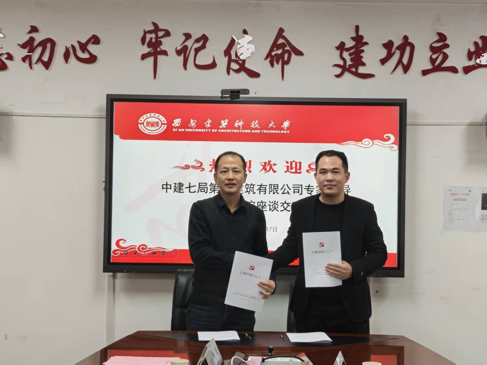 建七局四公司签署了《科研合作框架协议》,智能建造教研室党支部与中建七局四公司总部第五党支部签署了《党建联建协议》。后期双方将在党组织共建、科技研发、项目合作、实习实践、人才培养等方面开展长期合作。