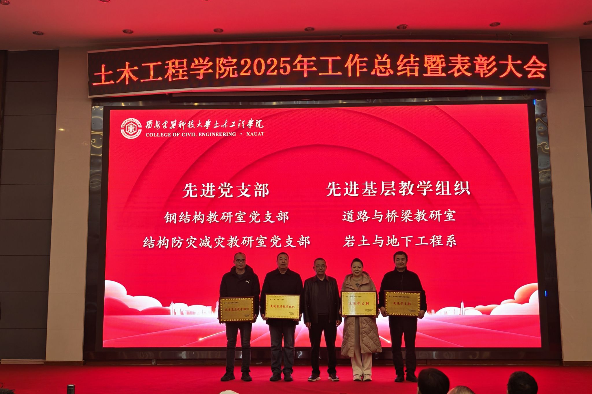 1月23日下午,土木工程学院2025年度工作总结暨表彰大会在雁塔校区土木楼516报告厅召开。学院全体教职工出席会议,会议由学院党委副书记李路路主持。